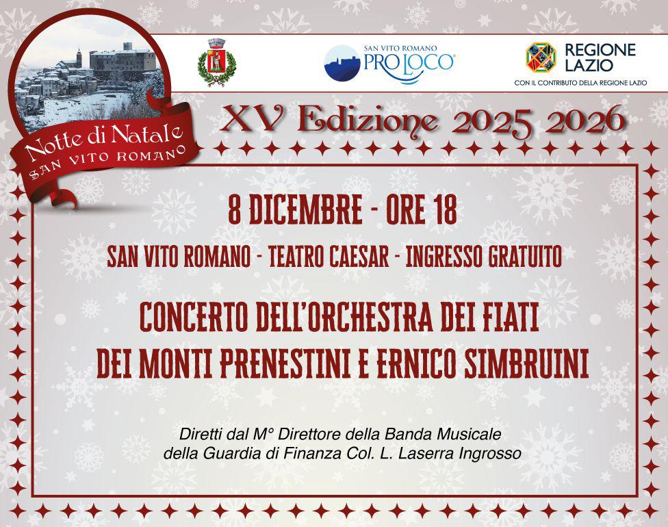 Prima evento natalizio con il concerto dell'orchestra dei fiati dei Monti Prenestini e Ernico Simbruini diretta dal M° Direttore della Banda Musicale della Guardia di Finanza Col. L. Maserra Ingrosso